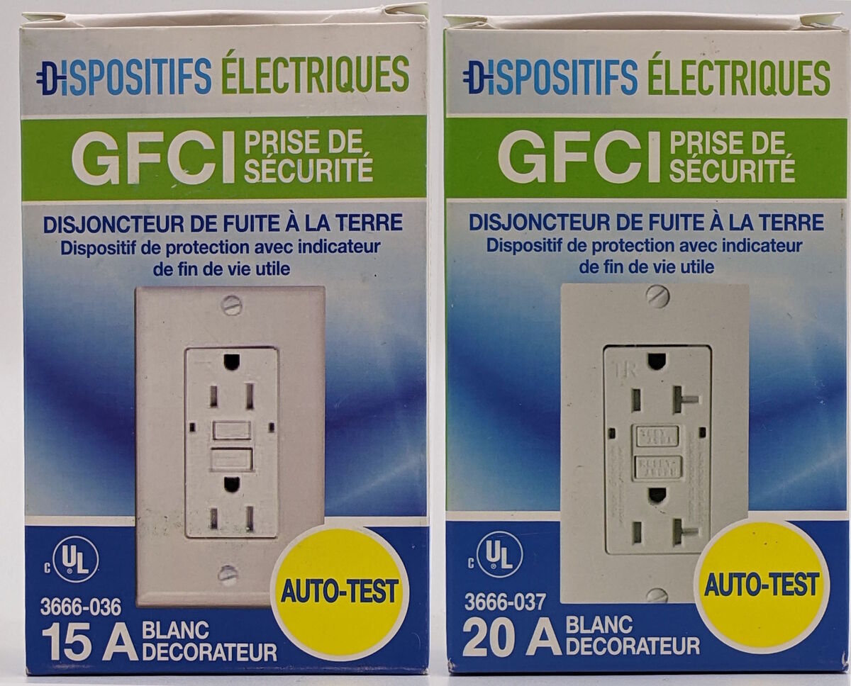 Plusieurs modèles de prises de courant avec disjoncteur de fuite à la terre (DDFT) marquées « Dispositifs Électroniques » ont fait l’objet d’un rappel volontaire. Les produits en question sont exclusivement disponibles et vendus par les Quincailleries Home Hardware et les Centres de rénovation Home Hardware (collectivement « les Quincailleries Home Hardware ») au Canada.